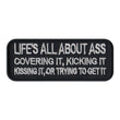 Embroidered Patch - Life's All About Ass, Covering It, Kicking It, Kissing It, Or Trying To Get It (4" x 1.5")